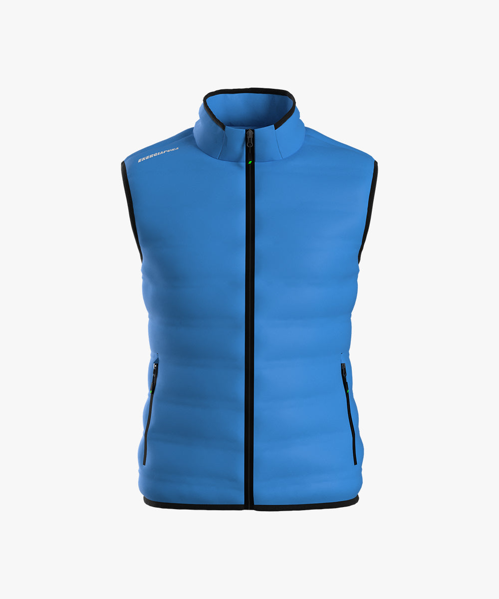 Parka sin manga térmica transpirable e impermeable de tejido RECICLADO, acolchado de 180gr. Corte entallado, cuello redondo, mangas y bajo ribeteados en tejido elástico. Dos bolsillos delanteros con cierre.